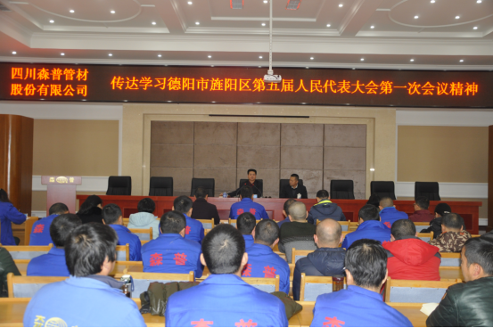 瀏覽次數(shù):26741 2016年12月9日(星期五),四川森普管材股份有限公司組織全體黨團員、全體管理人員在公司大會議室傳達學習旌陽區(qū)第五屆人代會第一次會議精神。